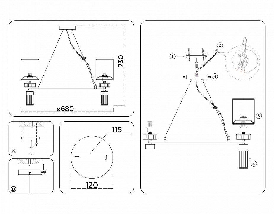 Точная форма - Несколько плафонов (Для подвесных люстр, потолочных люстр и подвесных светильников): Плафоны на кольце