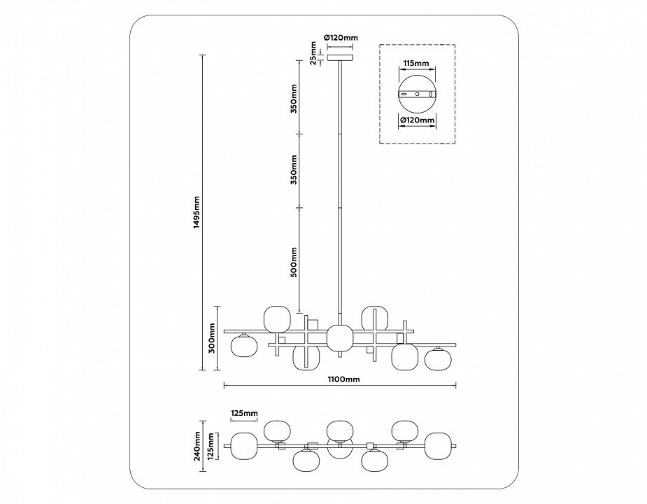 Основная форма светильника (Для подвесных люстр, потолочных люстр и подвесных светильников): Несколько плафонов