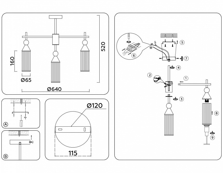 Основная форма светильника (Для подвесных люстр, потолочных люстр и подвесных светильников): Несколько плафонов