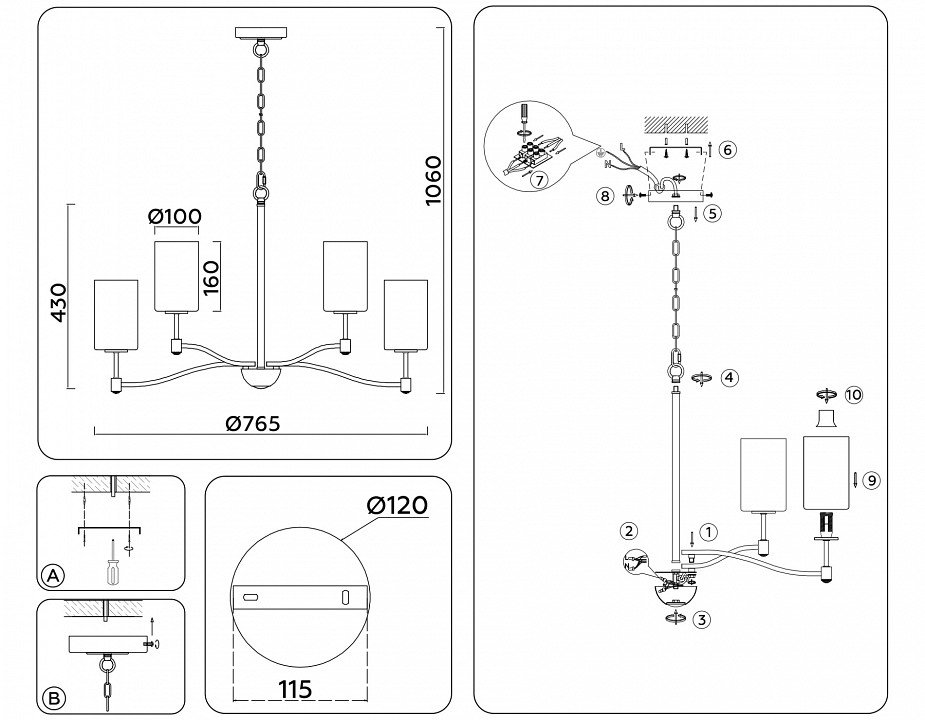 Основная форма светильника (Для подвесных люстр, потолочных люстр и подвесных светильников): Несколько плафонов