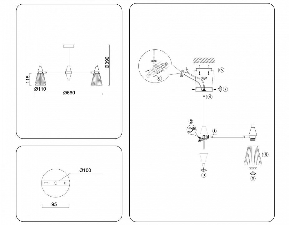 Основная форма светильника (Для подвесных люстр, потолочных люстр и подвесных светильников): Несколько плафонов