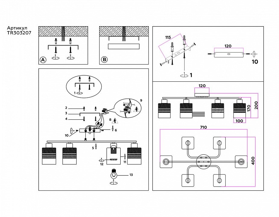 Наличие ламп в комплекте: лампы в комплект не входят