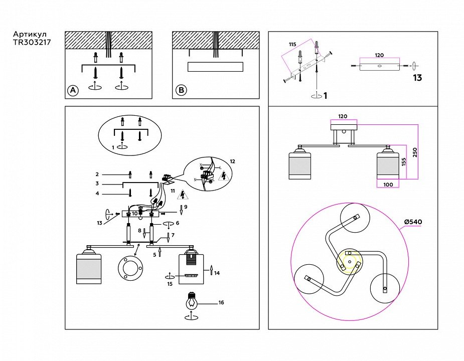 Наличие ламп в комплекте: лампы в комплект не входят