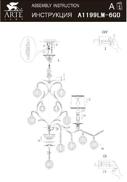 Станьте первым, кто оставит отзыв о товаре Подвесная люстра Arte Lamp Monarch A1199LM-6GO.