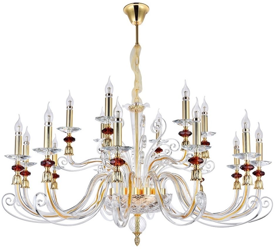 Главная Люстры и потолочные светильники Подвесная люстра Crystal Lux Catarina SP12+6 V2 Gold/Transparent-Cognac