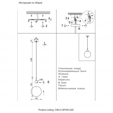 Длина подвеса, мм: 1800