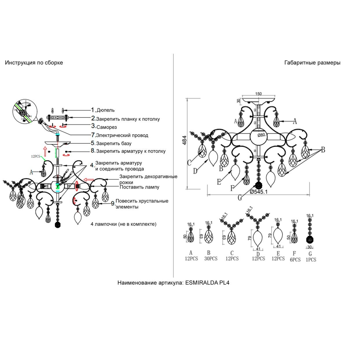 Материал плафонов: ? Хрусталь, Металл