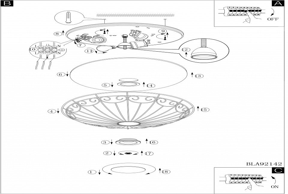 Направление плафонов: вниз