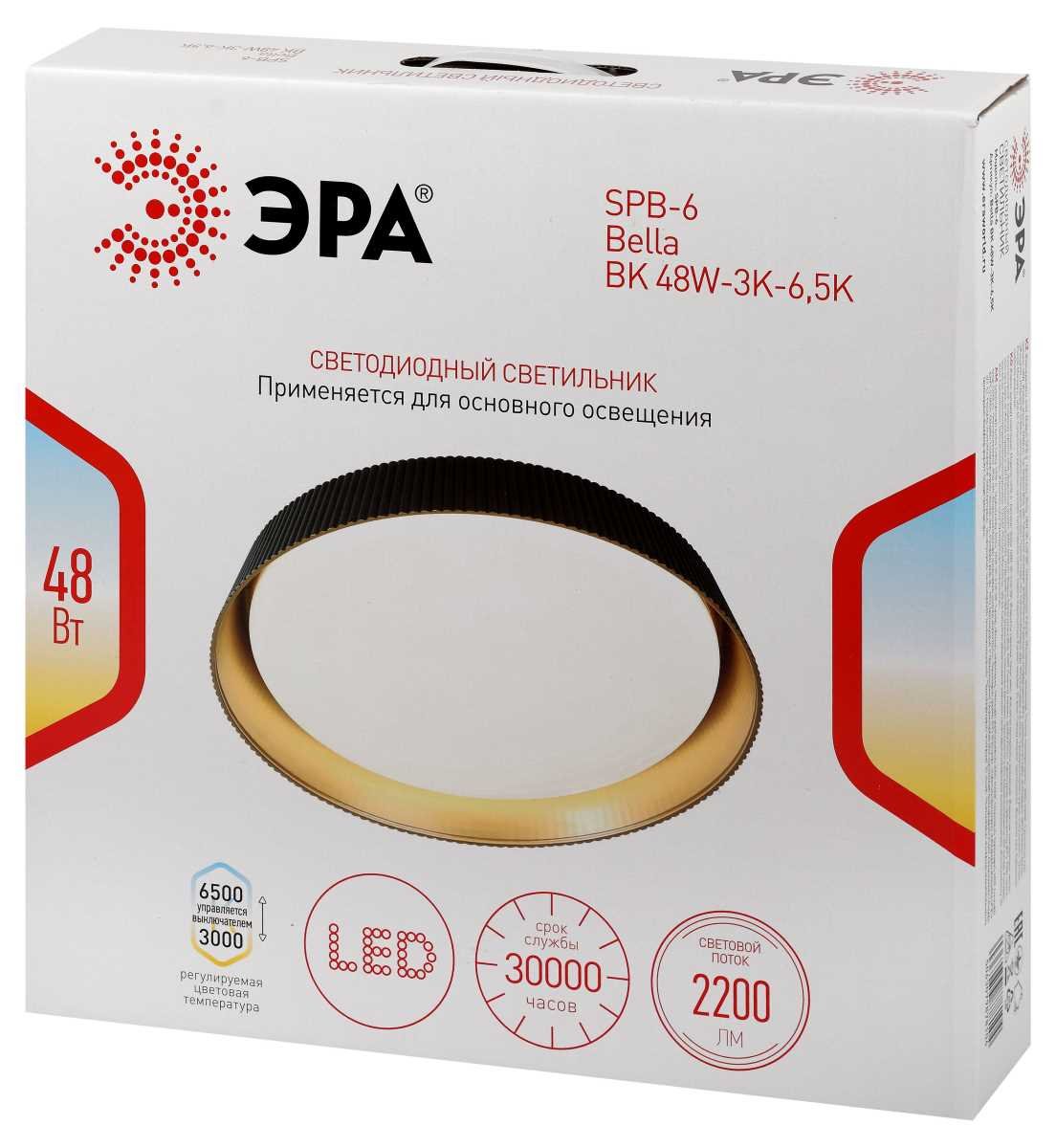 Главная Люстры и потолочные светильники Светильник потолочный светодиодный ЭРА Классик без ДУ SPB-6 Bella 48W-3K-6,5K BK 3000-6500К чёрный Б0070194