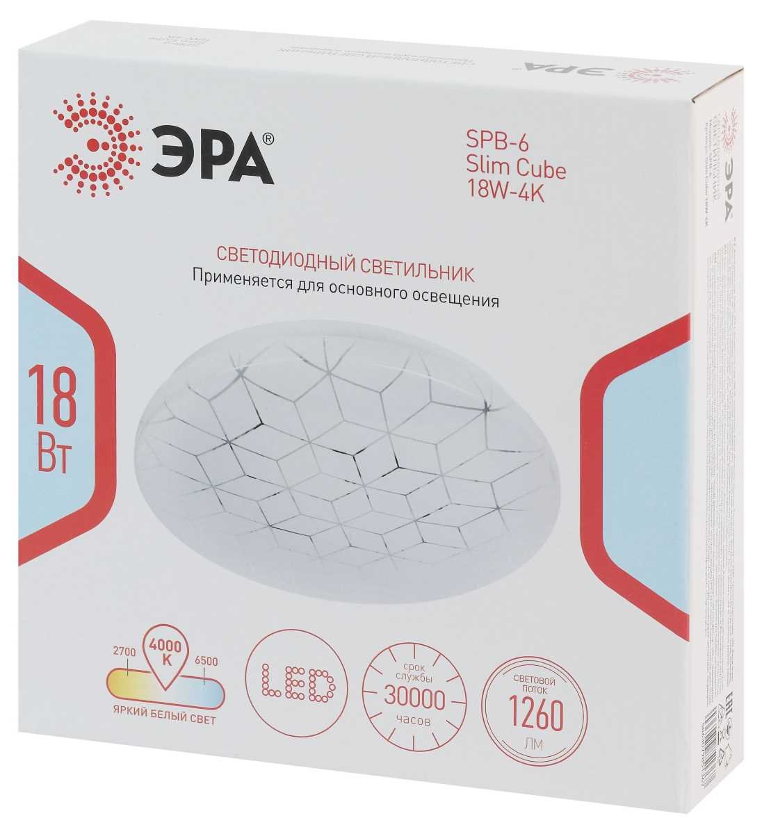 Главная Люстры и потолочные светильники Светильник потолочный светодиодный ЭРА Классик без ДУ SPB-6 Slim Cube 18W-4K 4000К Б0071115