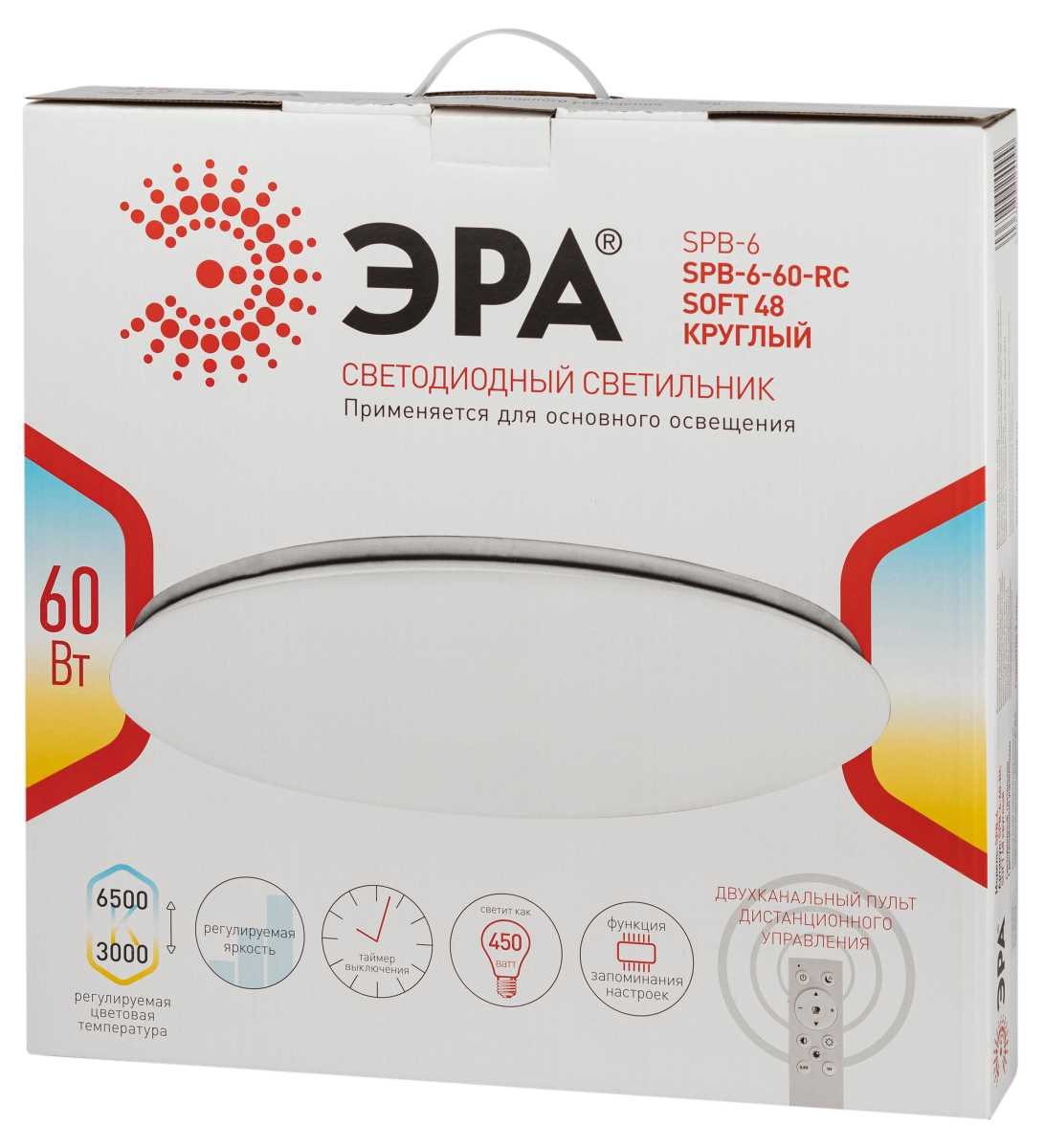 Главная Люстры и потолочные светильники Светильник потолочный светодиодный ЭРА Классик с ДУ SPB-6-60-RC SOFT 48 круглый 60Вт 3000-6000К Б0057946