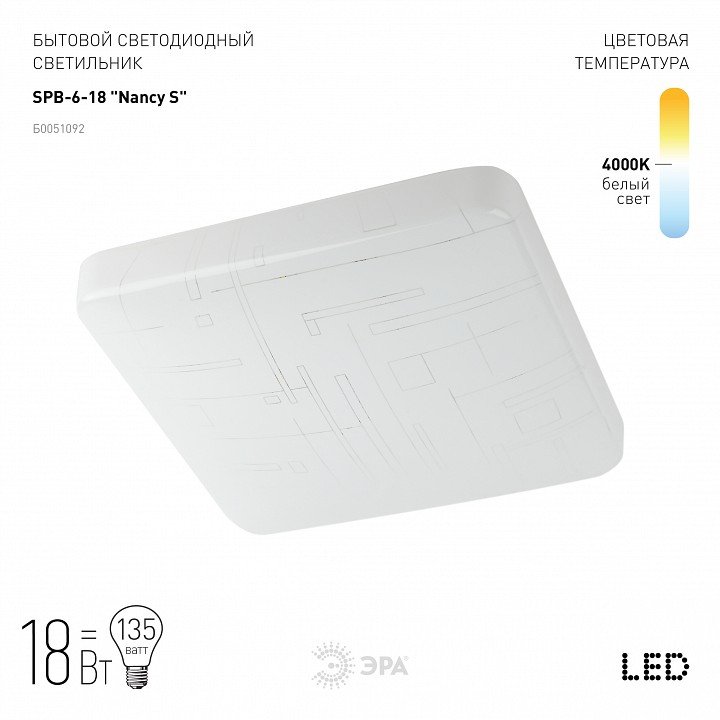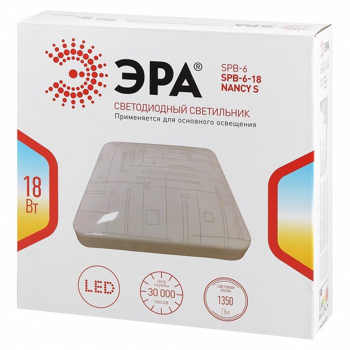 Станьте первым, кто оставит отзыв о товаре Потолочный светодиодный светильник ЭРА Классик без ДУ SPB-6-18 Nancy S Б0051092.