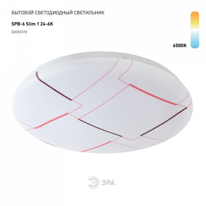 Главная Люстры и потолочные светильники Потолочный светодиодный светильник ЭРА Slim без ДУ SPB-6 Slim 1 24-6K Б0050378