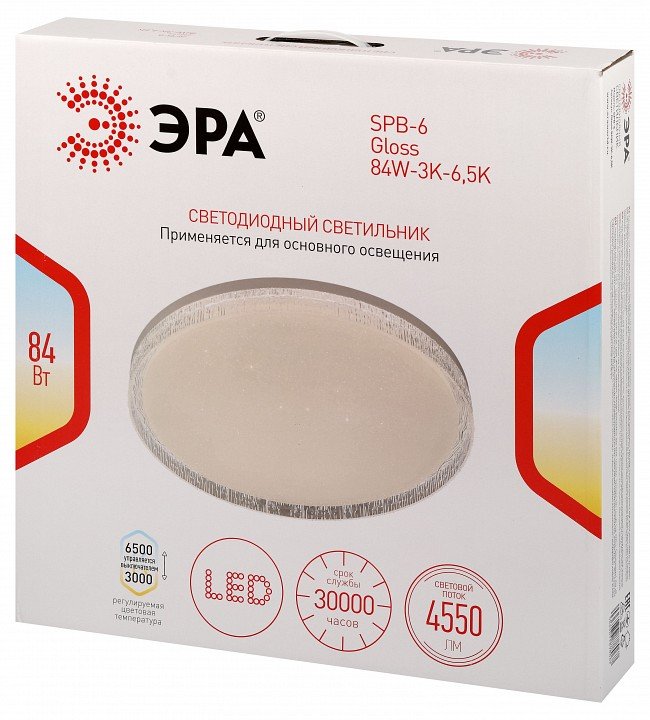 Главная Люстры и потолочные светильники Потолочный светильник ЭРА SPB-6 Gloss 84W-3K-6,5K