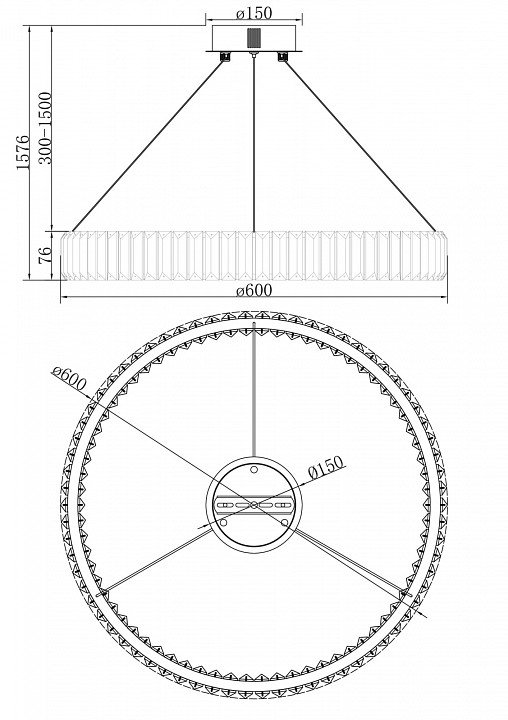 Длина подвеса, мм: 1500