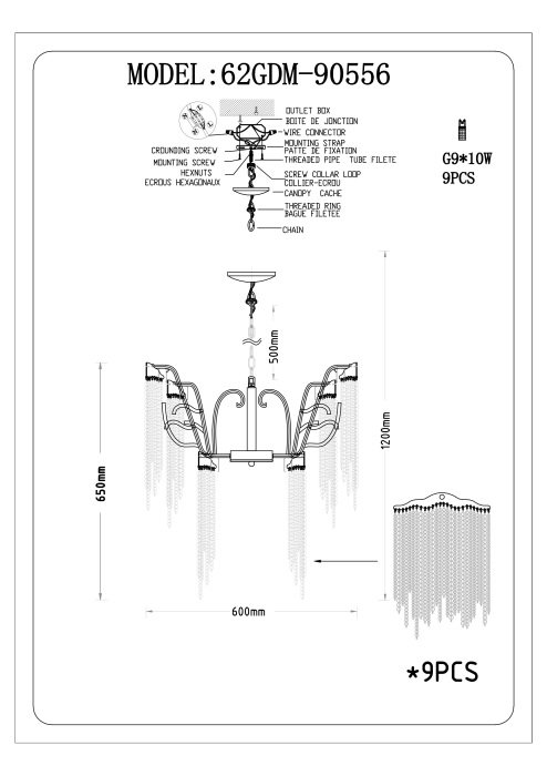 Количество ламп: 9