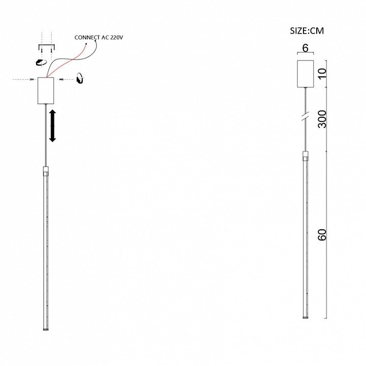 Длина подвеса, мм: 3000