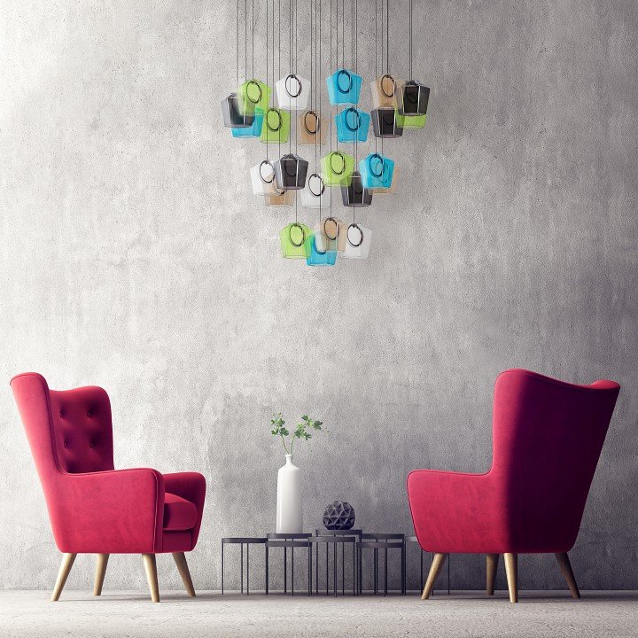 Точная форма - Несколько плафонов (Для подвесных люстр, потолочных люстр и подвесных светильников): Каскад в одну комнату