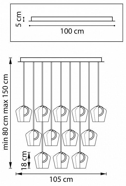 Основная форма светильника (Для подвесных люстр, потолочных люстр и подвесных светильников): Несколько плафонов