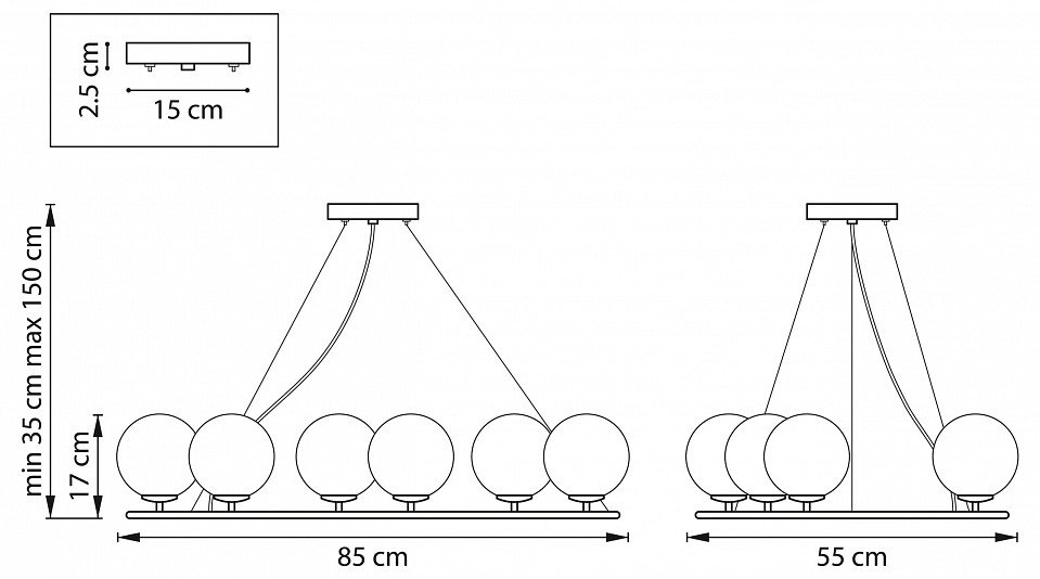 Основная форма светильника (Для подвесных люстр, потолочных люстр и подвесных светильников): Несколько плафонов