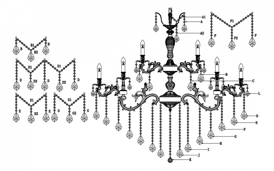 Материал плафонов: ? Хрусталь, Без плафона