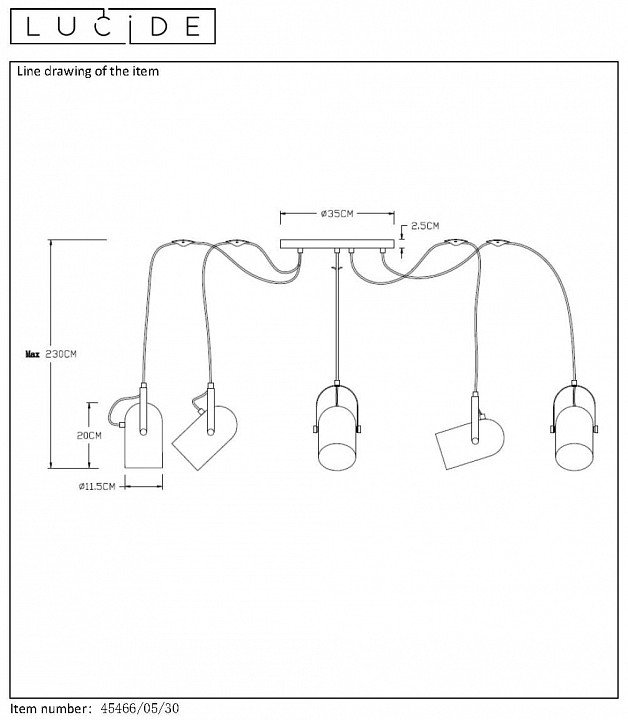 Главная Люстры и потолочные светильники Подвесная люстра Lucide Swapp 45466/05/30