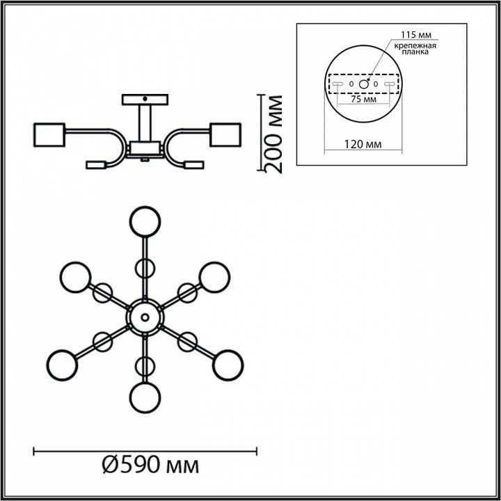 Основная форма светильника (Для подвесных люстр, потолочных люстр и подвесных светильников): Несколько плафонов