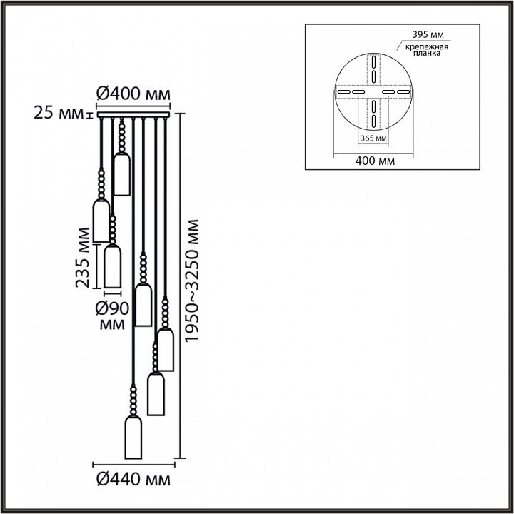 Основная форма светильника (Для подвесных люстр, потолочных люстр и подвесных светильников): Несколько плафонов