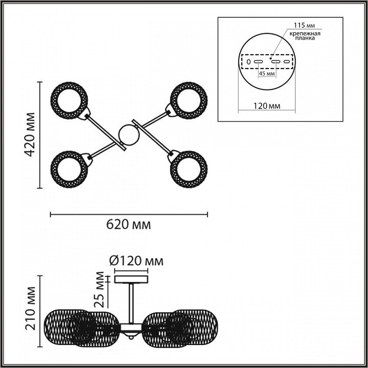 Основная форма светильника (Для подвесных люстр, потолочных люстр и подвесных светильников): Несколько плафонов