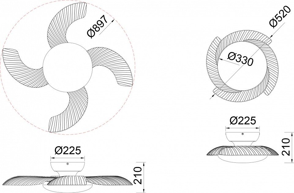 Точная форма - Один плафон / абажур (Для подвесных люстр, потолочных люстр и подвесных светильников): Вентилятор