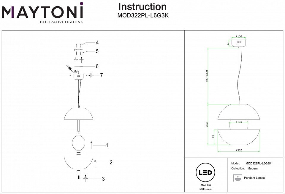 Станьте первым, кто оставит отзыв о товаре Подвесной светильник Maytoni Rebel MOD322PL-L6G3K.