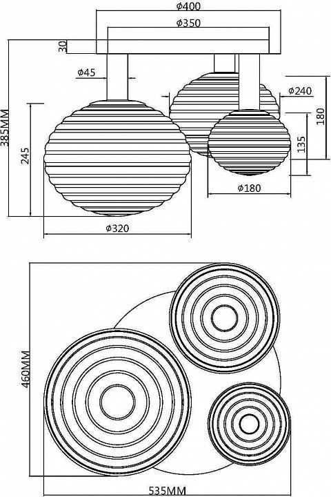 Тип поверхности плафонов: матовый, рельефный
