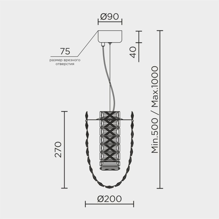 Длина подвеса, мм: 1000