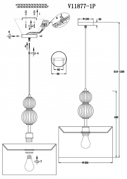 Длина подвеса, мм: 1230