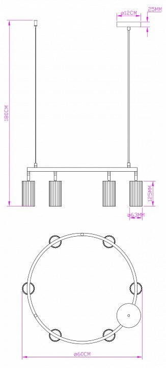 Основная форма светильника (Для подвесных люстр, потолочных люстр и подвесных светильников): Несколько плафонов