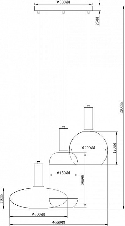 Точная форма - Несколько плафонов (Для подвесных люстр, потолочных люстр и подвесных светильников): Плафоны вниз из пластины