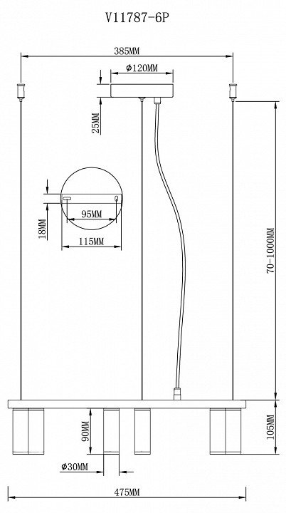 Длина подвеса, мм: 1000