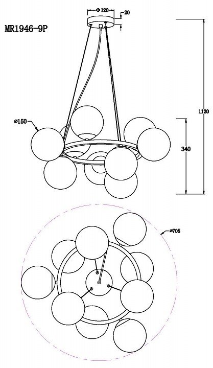 Станьте первым, кто оставит отзыв о товаре Подвесная люстра MyFar Aerton MR1946-9P.