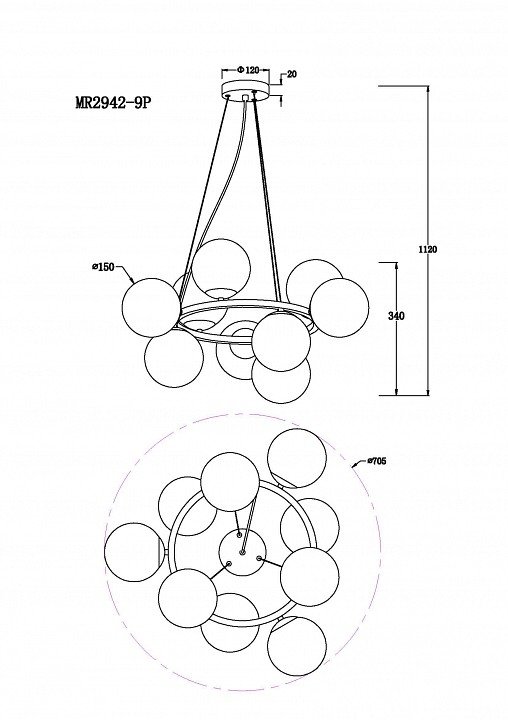 Станьте первым, кто оставит отзыв о товаре Подвесная люстра MyFar Aerton MR2942-9P.