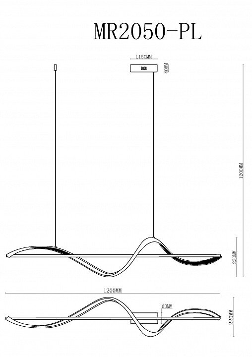 Длина подвеса, мм: 980
