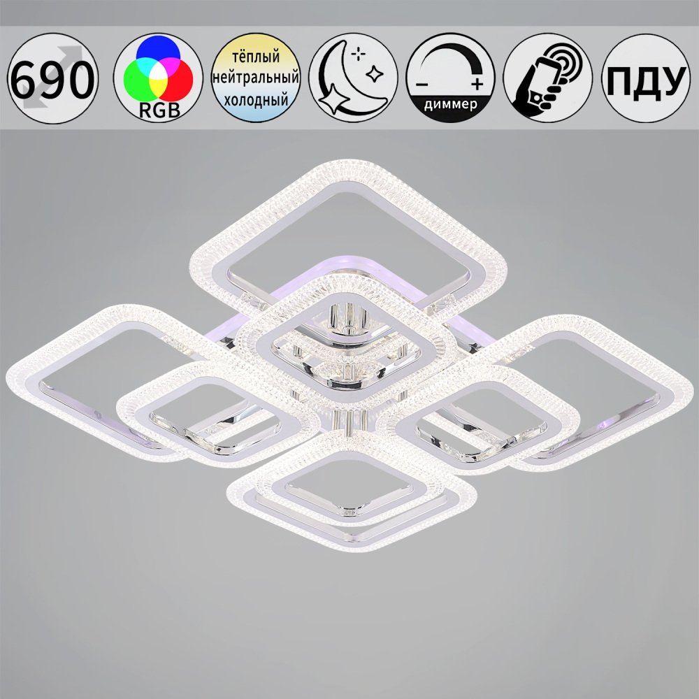 Главная Люстры и потолочные светильники Светильник потолочный Reluce 09838-0.3-4+4B CR (RGB)