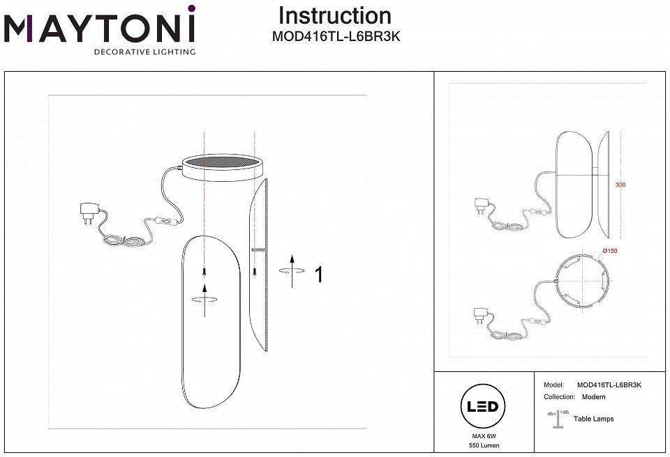 Станьте первым, кто оставит отзыв о товаре Интерьерная настольная лампа Maytoni Insight MOD416TL-L6BR3K.
