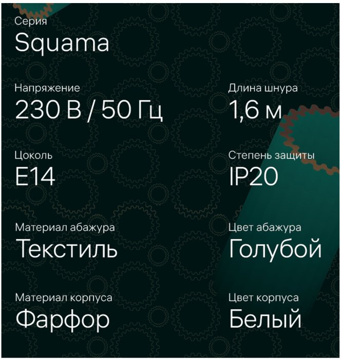 Цвет плафона: Белый, Голубой
