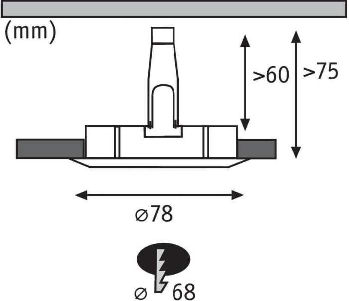 Диаметр врезного отверстия, мм: 68