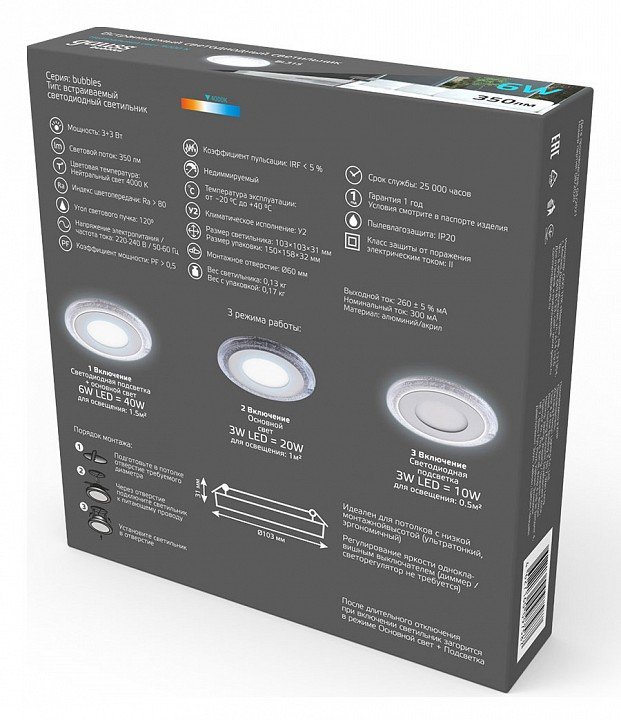 Станьте первым, кто оставит отзыв о товаре Встраиваемый светодиодный светильник Gauss Backlight Bubbles BL315.