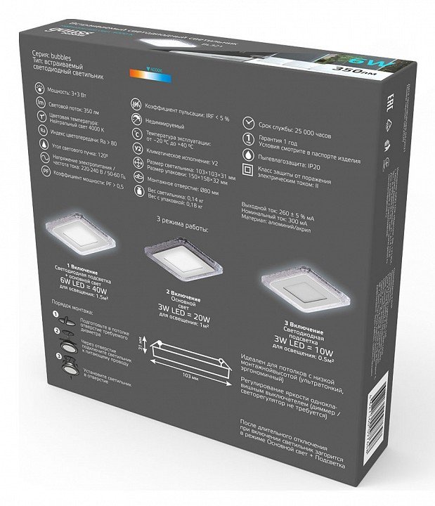 Станьте первым, кто оставит отзыв о товаре Встраиваемый светодиодный светильник Gauss Backlight Bubbles BL321.