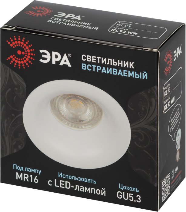 Главная Точечные светильники Встраиваемый светильник ЭРА KL93 WH Б0054377