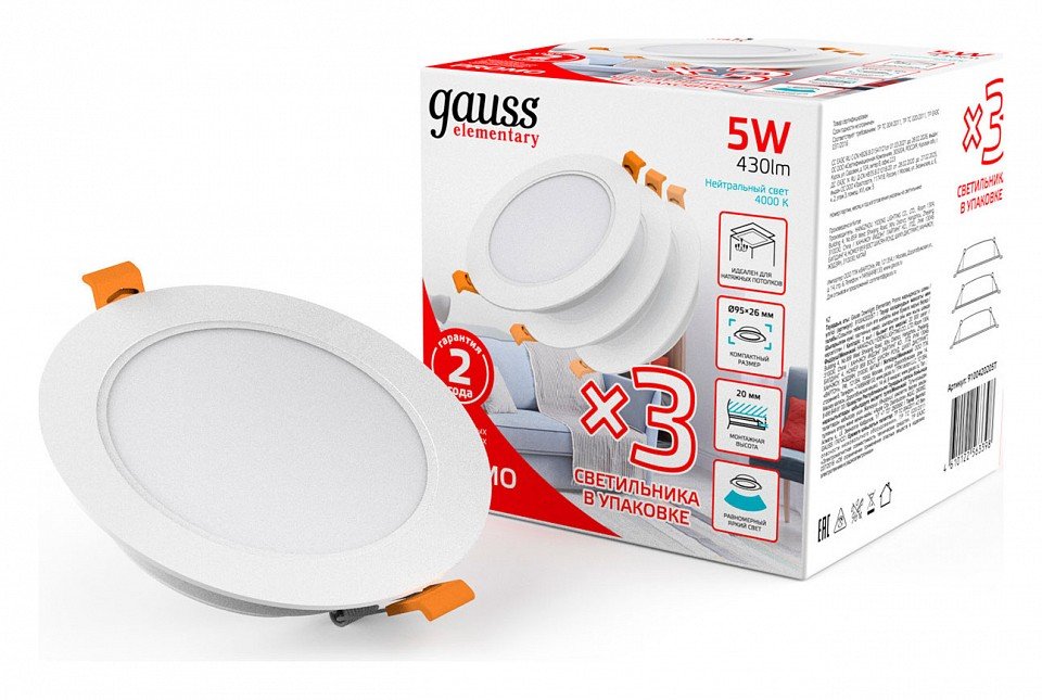 Станьте первым, кто оставит отзыв о товаре Встраиваемый светодиодный светильник Gauss Elementary Downlight 9100420205T.