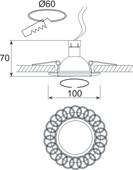 Диаметр врезного отверстия, мм: 60