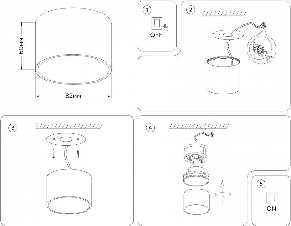Тип установки светильника: накладной